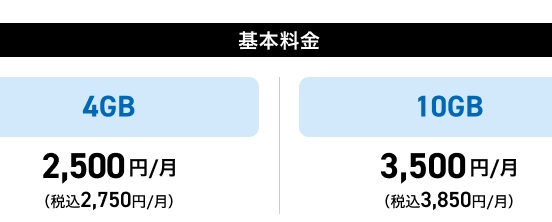 | 基本料金(月額) | 2970円 | 2750円 | 3850円 |